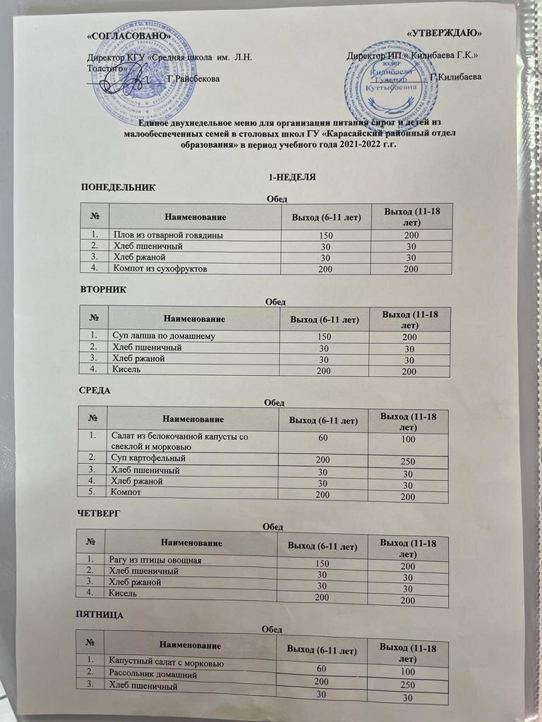 17 January 2022 0 1 2 3 4 5 "Л.Н.Толстой атындағы орта мектеп" КММ ІІ жарты жылдық бойынша Ас мәзірі.