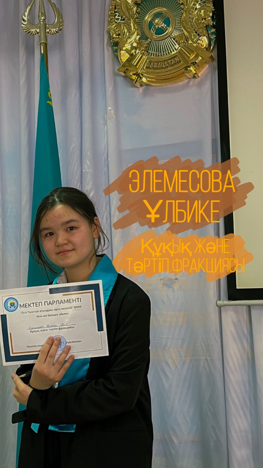 2 Элемесова Ұлбике 9 «А» сынып Құқық және тәртіп фракциясы