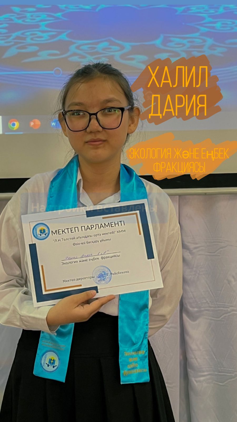 1 Халил Дария 8 «А» сынып Экология және еңбек фракциясы