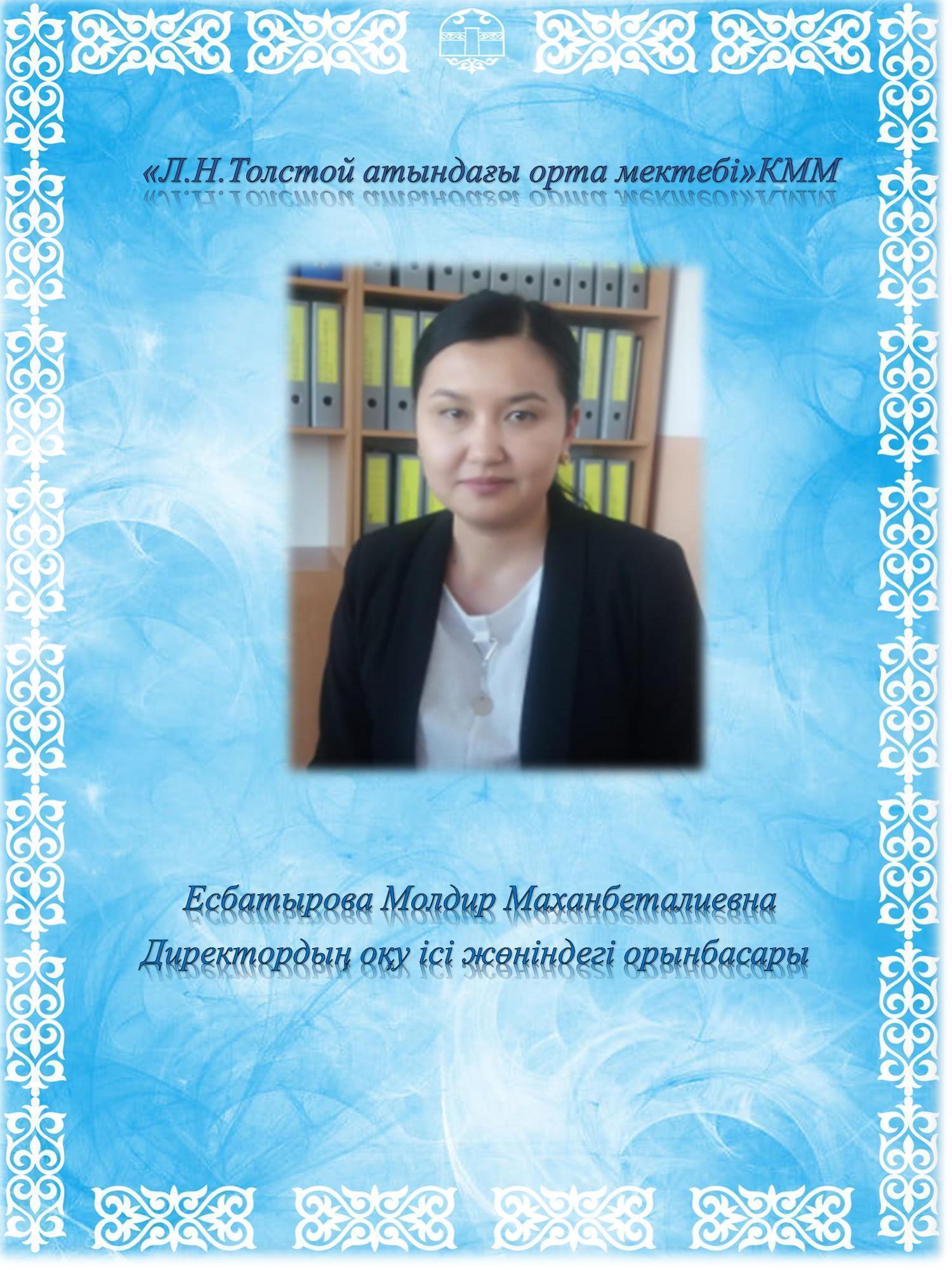 » » » Есбатырова Молдир Маханбеталиевна