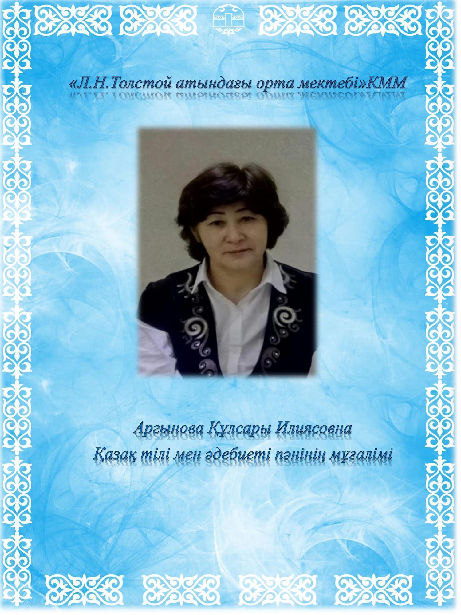 Аргынова Құлсары Илиясовна » Лев Николаевич Толстой атындағы орта мектеп