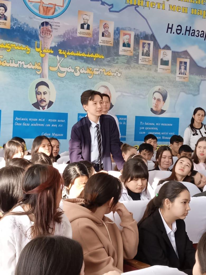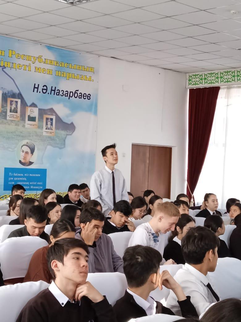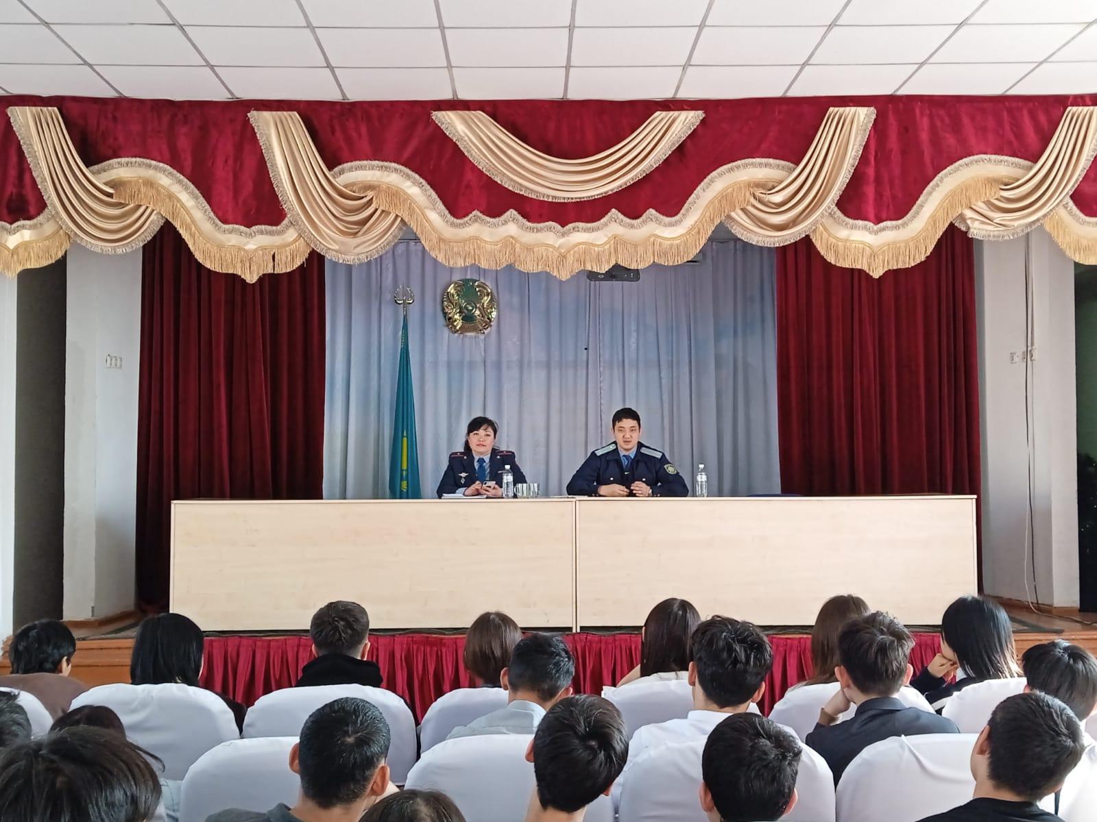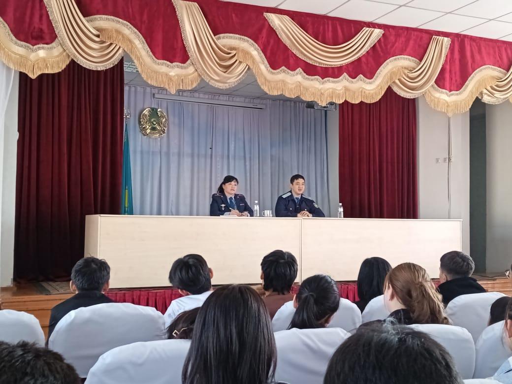 Бүгін Қарасай АПБ жергілікті полиция қызметінің Ювеналды полиция тобының инспекторы полиция майоры Ж.Темырханова мен Қарасай аудандық прокуратурасының прокуроры М. Сакибаев 9-11 сынып оқушыларына «Суицидтің алдын алу, кибербуллингті алдын алу бойынша іс-шаралар жұмыстарын жүргізді, сонымен қатар «Жасөспірімдер арасындағы құқық бұзушылықты» алдын алу туралы профилактикалық жұмыстар бойынша дәріс оқыды.