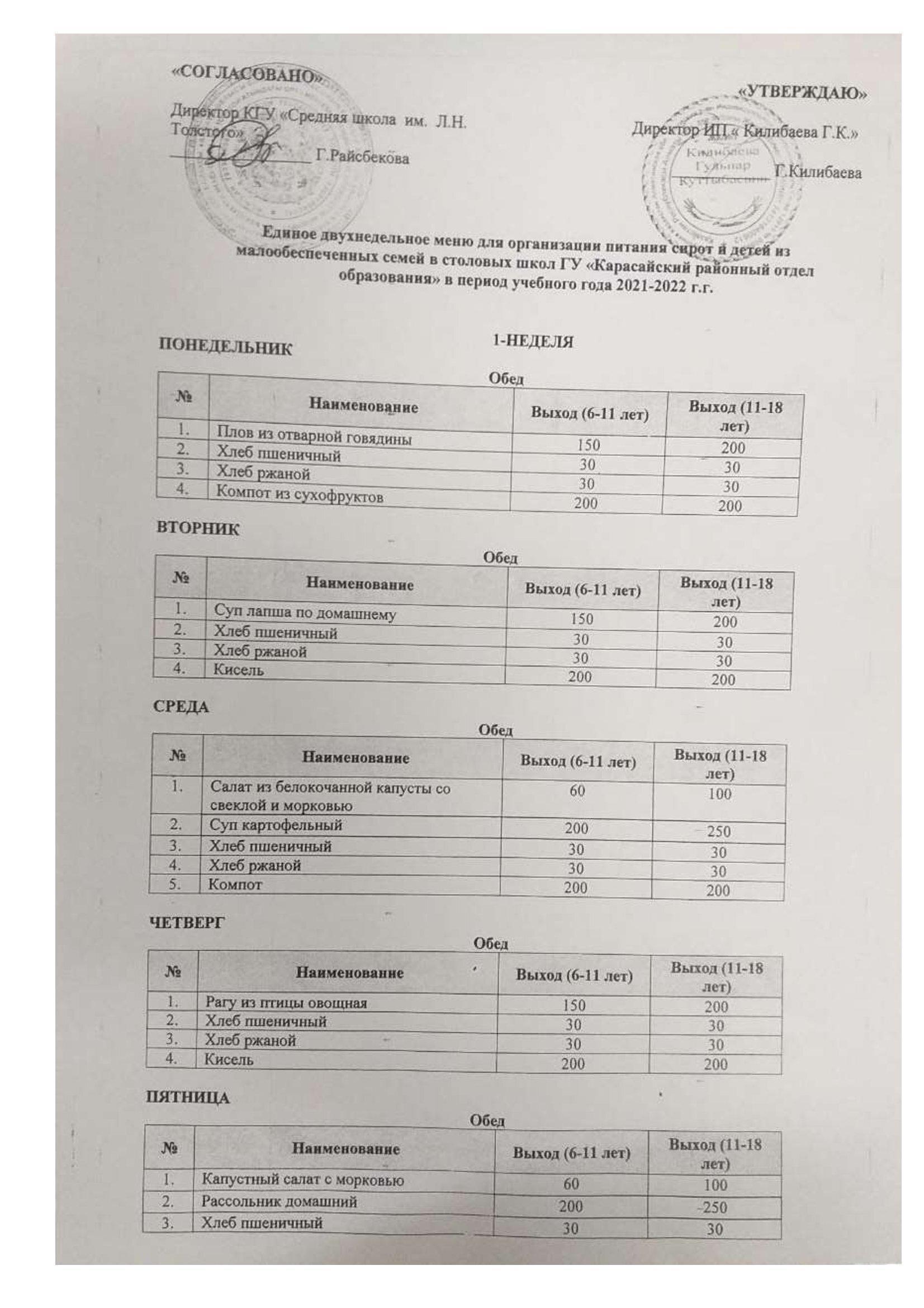 » » "Л.Н.Толстой атындағы орта мектеп" КММ Ас мәзірі.