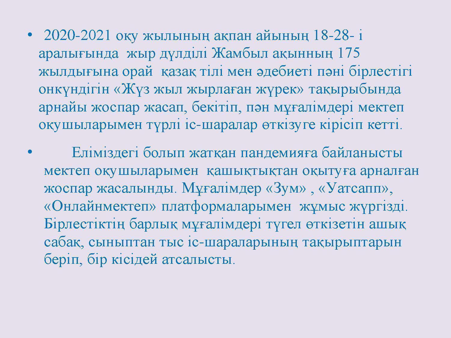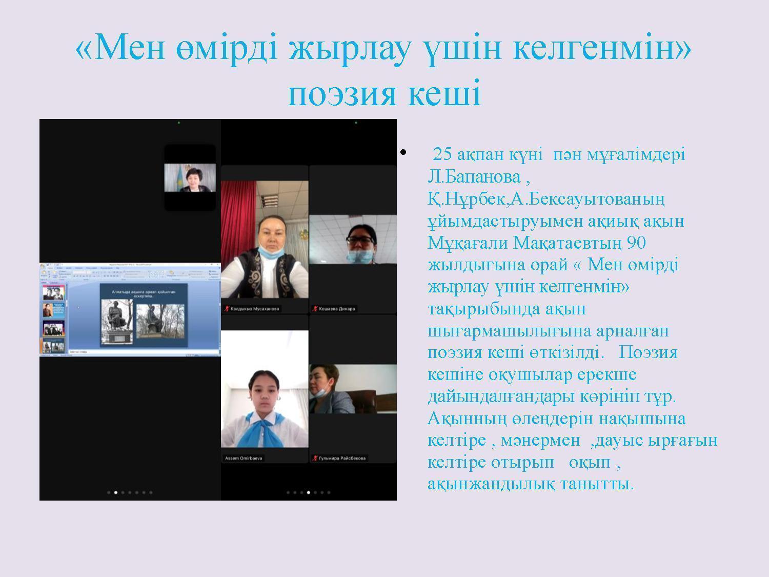 «Л.Н.Толстой атындағы орта мектебі» коммуналдық мемлекеттік мекемесі «Жүз жыл жырлаған жүрек» атты қазақ тілі мен әдебиеті пәні әдістемелік бірлестігінің онкүндігінің аяқталуы.