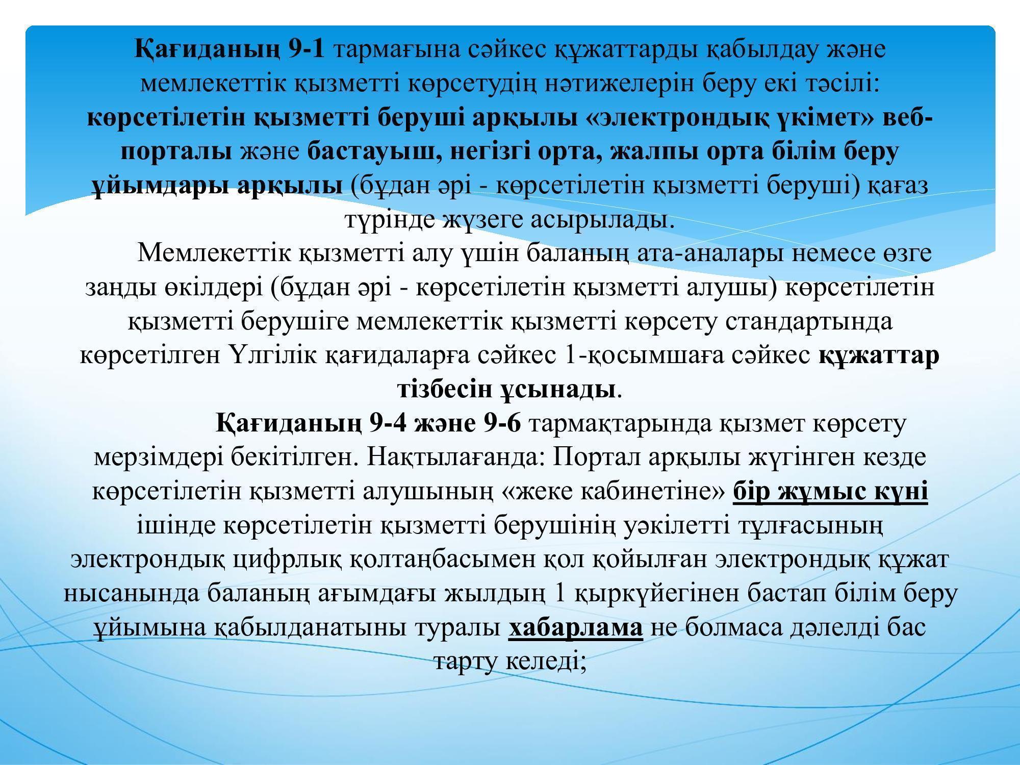 1-сыныпқа құжаттар қабылдау 2021 жылдың 1-сәуірінен басталды.