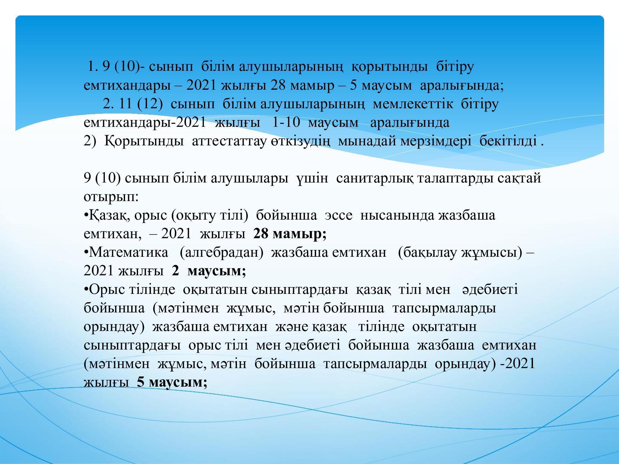 2020-2021 оқу жылын аяқтау және қорытынды аттестаттауды өткізу. » Лев Николаевич Толстой атындағы орта мектеп