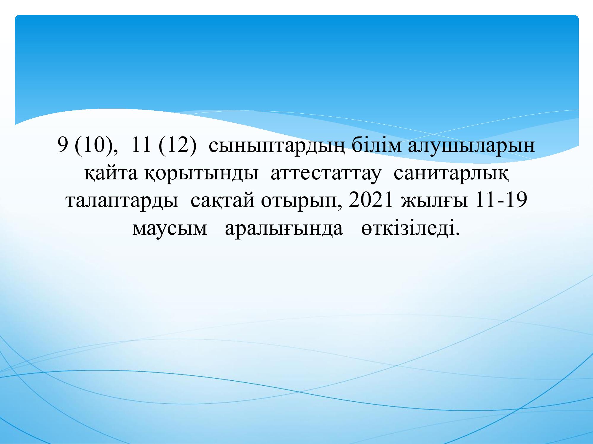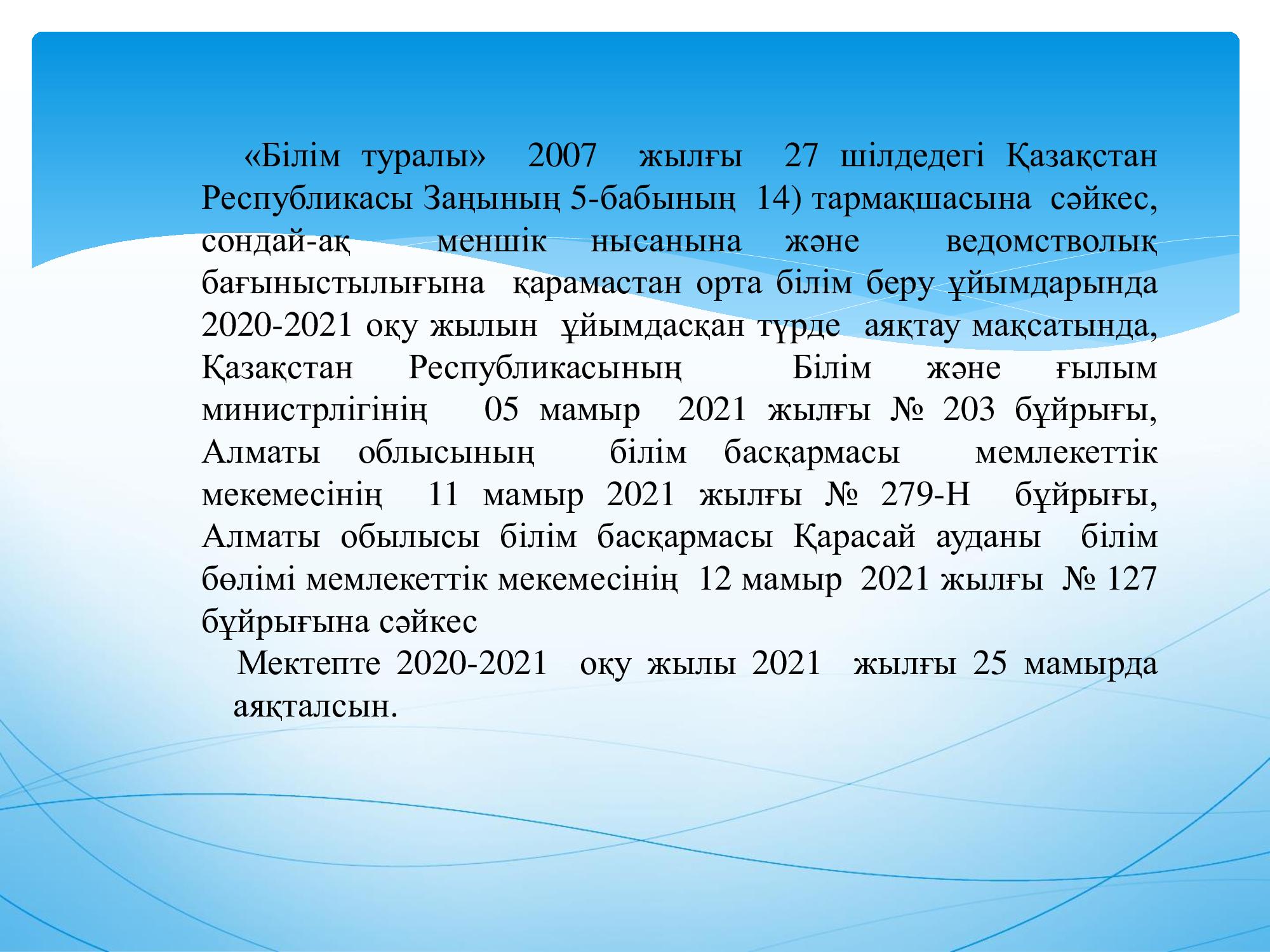 2020-2021 оқу жылын аяқтау және қорытынды аттестаттауды өткізу.
