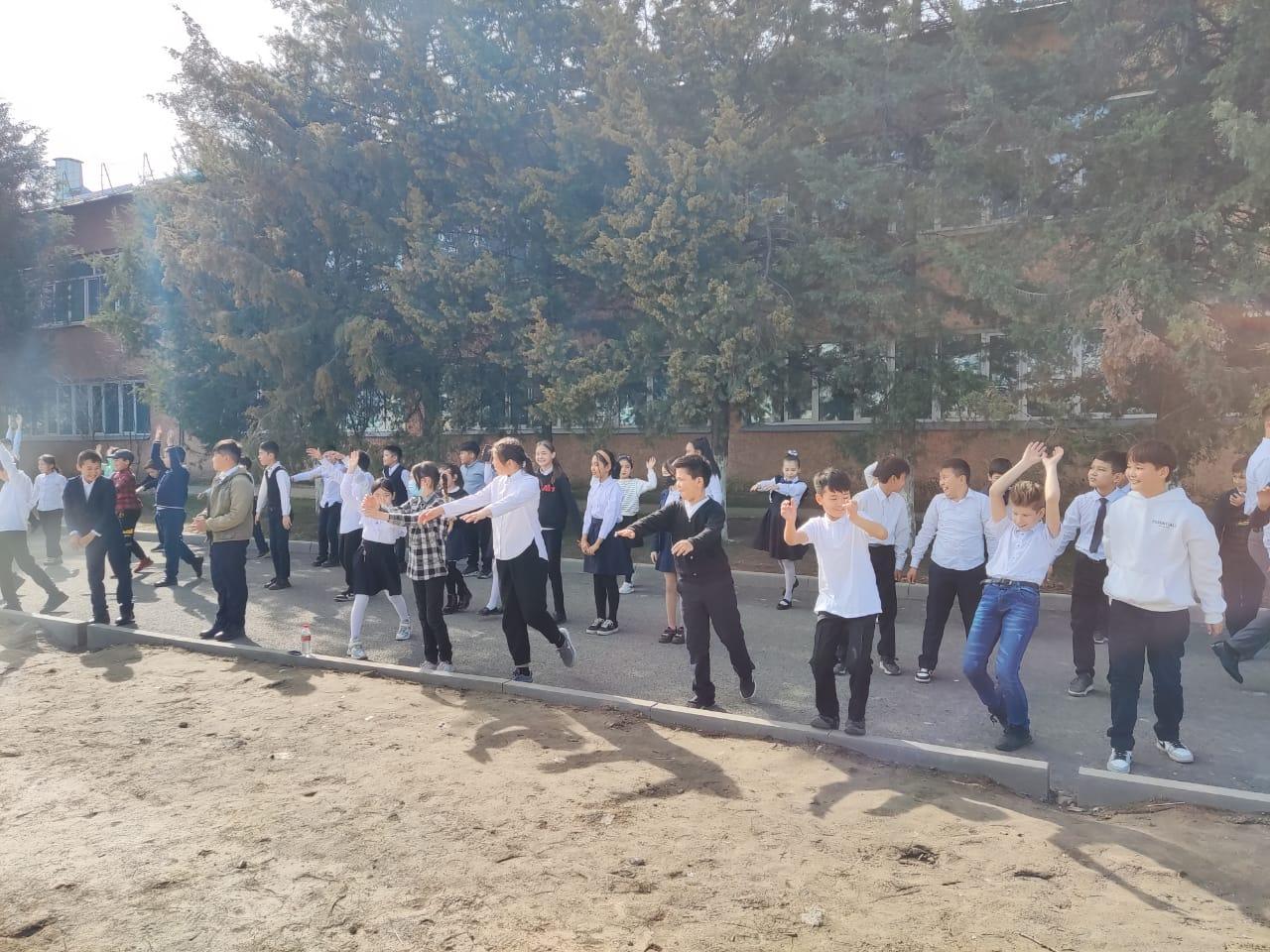 «Алматы облысының денсаулық сақтау басқармасы» мемлекеттік мекемесінің шаруашылық жүргізу құқығындағы Қарасай ауданаралық көпсалалы ауруханасы» мемлекеттік коммуналдық кәсіпорнының 2022 жылғы 31 наурыздағы №04-32-07-01/135 хатына сәйкес Дүниежүзілік денсаулық күні аясында "Денсаулық баршаға! " ұранымен дене белсенділігін арттыру, зиянды әдеттерден аулақ болып, тұрақты мінез-құлықты қалыптастыру мақсатында «Л.Н.Толстой атындағы орта мектебі» коммуналдық мемлекеттік мекемесінде 2022 жылдың 7 сәуірі күні білім алушылары мен сынып жетекшілері бірге синхронды таңғы жаттығу орындап, тәрбие сағаттары өткізілді.