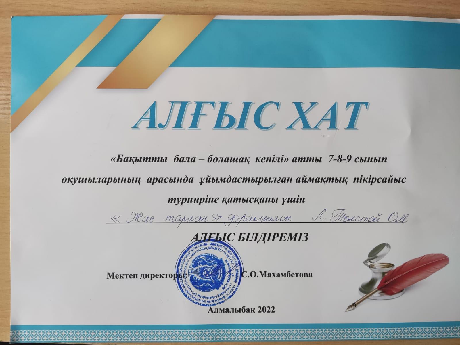 Турнирге мектебімізден 8«Ғ» сынып оқушылары: Нұртай Жұлдыз бен Төлепберген Нұрай қатысып, Алғыс хаттармен марапатталды!