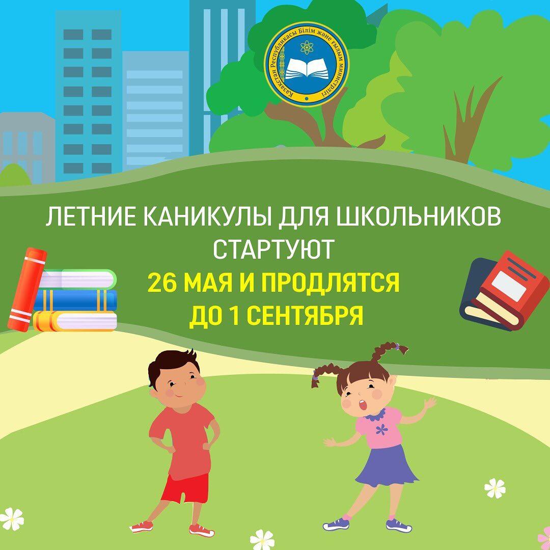 Публикация министра образования и науки Асхата Аймагамбетова в Telegram: «Подписал приказ о завершении учебного года и проведении экзаменов в школах Казахстана. Все казахстанские учебные заведения среднего образования завершают учебный год 25 мая. Летняя школа будет организована с 26 мая по 17 июня. Итоговые выпускные экзамены обучающихся 9 и 11 классов пройдут по утвержденному графику. Каникулы у школьников продлятся до 1 сентября.»