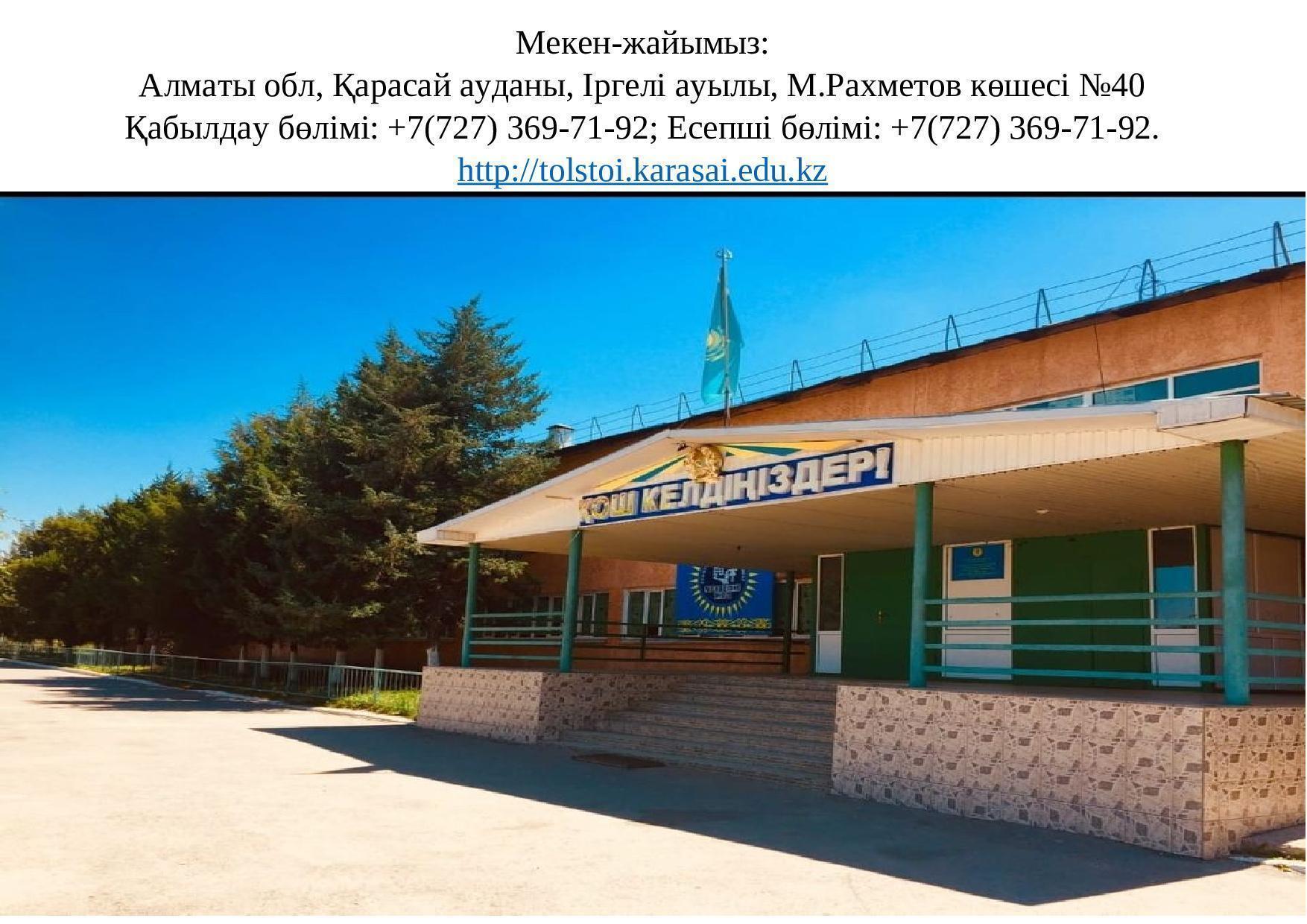 Мекен-жайымыз » Лев Николаевич Толстой атындағы орта мектеп