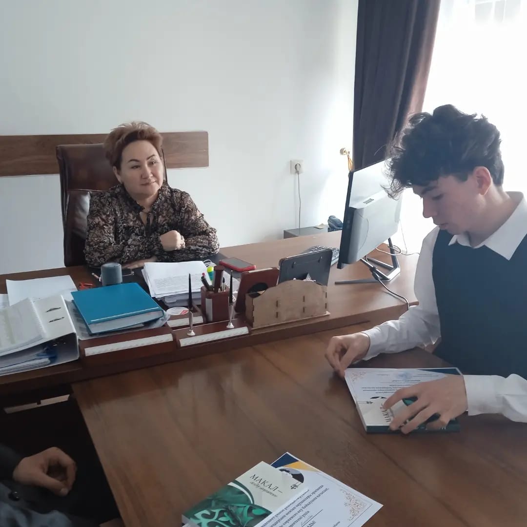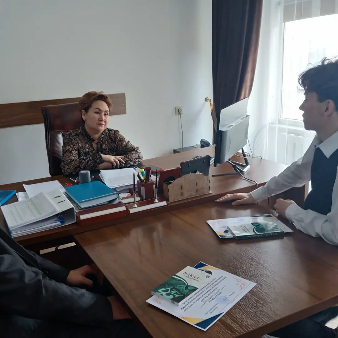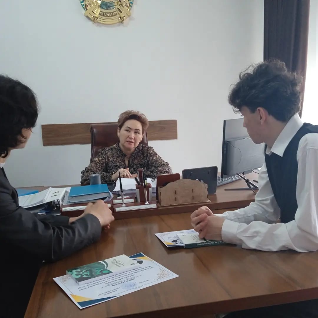 Құттықтау барысында мектеп директоры өз кабинетінде қабылдап , оқушыларымыздың "Дарынды" оқушыларды дамыту мақсатындағы ұсыныстарын тыңдады.