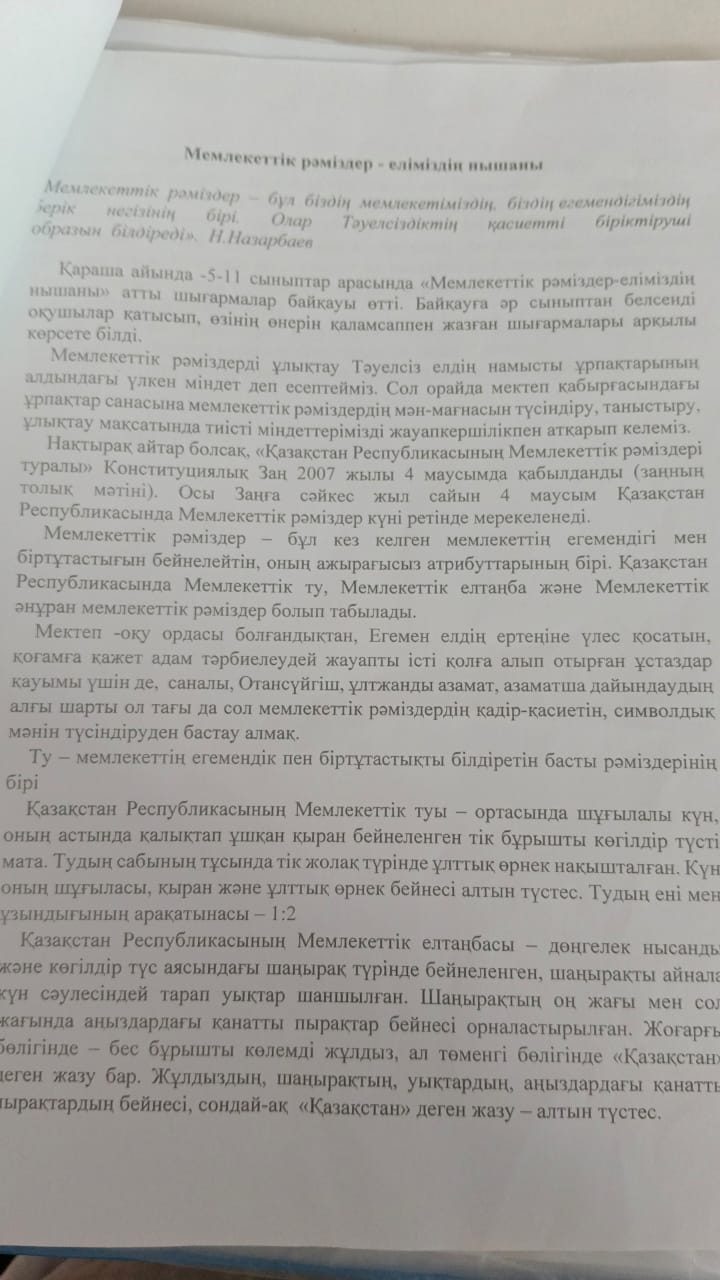 "Мемлекеттік рәміздер-еліміздің нышаны»