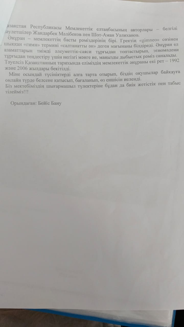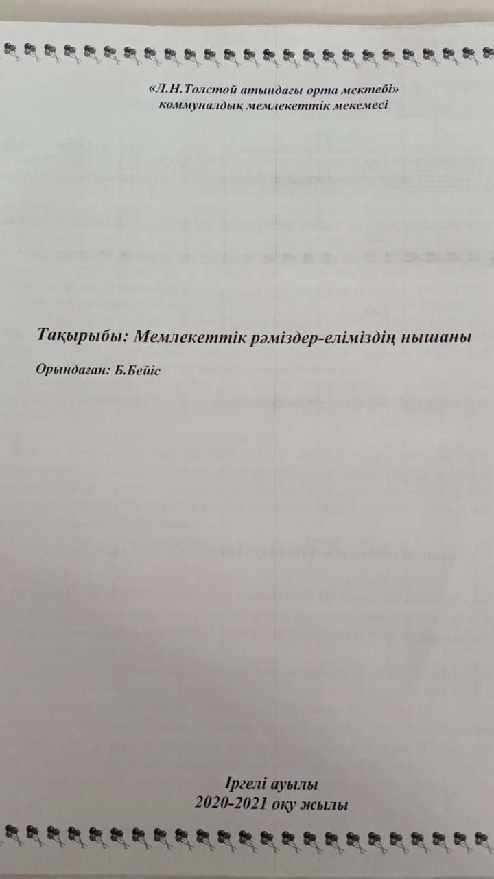 "Мемлекеттік рәміздер-еліміздің нышаны» » Лев Николаевич Толстой атындағы орта мектеп