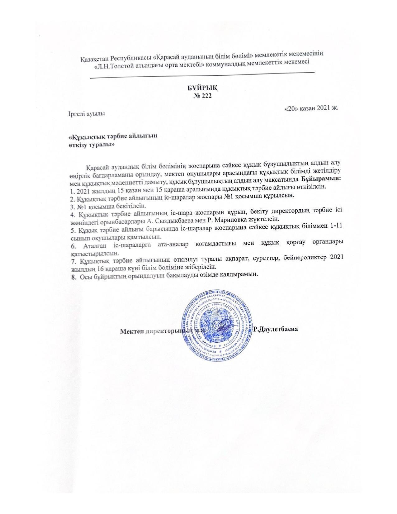 Құқтық айлық » Лев Николаевич Толстой атындағы орта мектеп