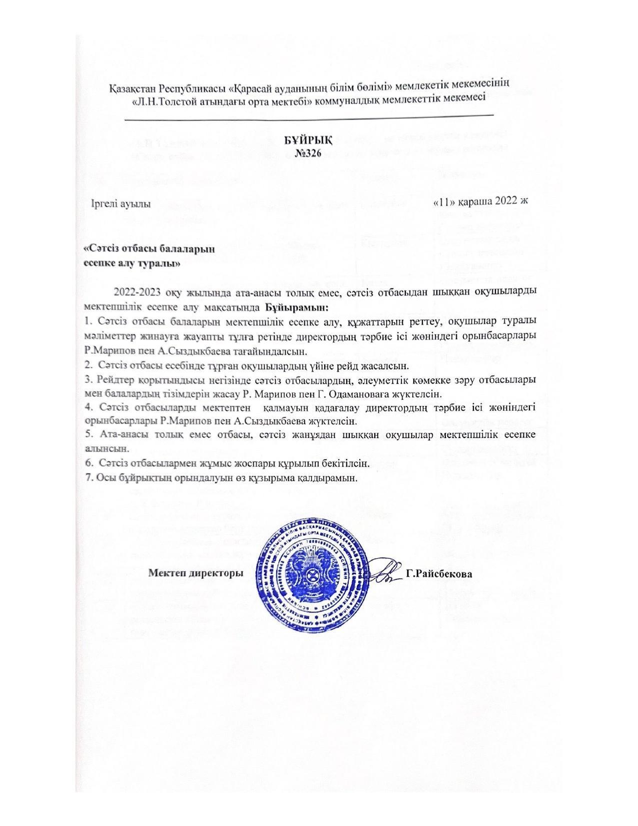 Құқық айлық » Лев Николаевич Толстой атындағы орта мектеп