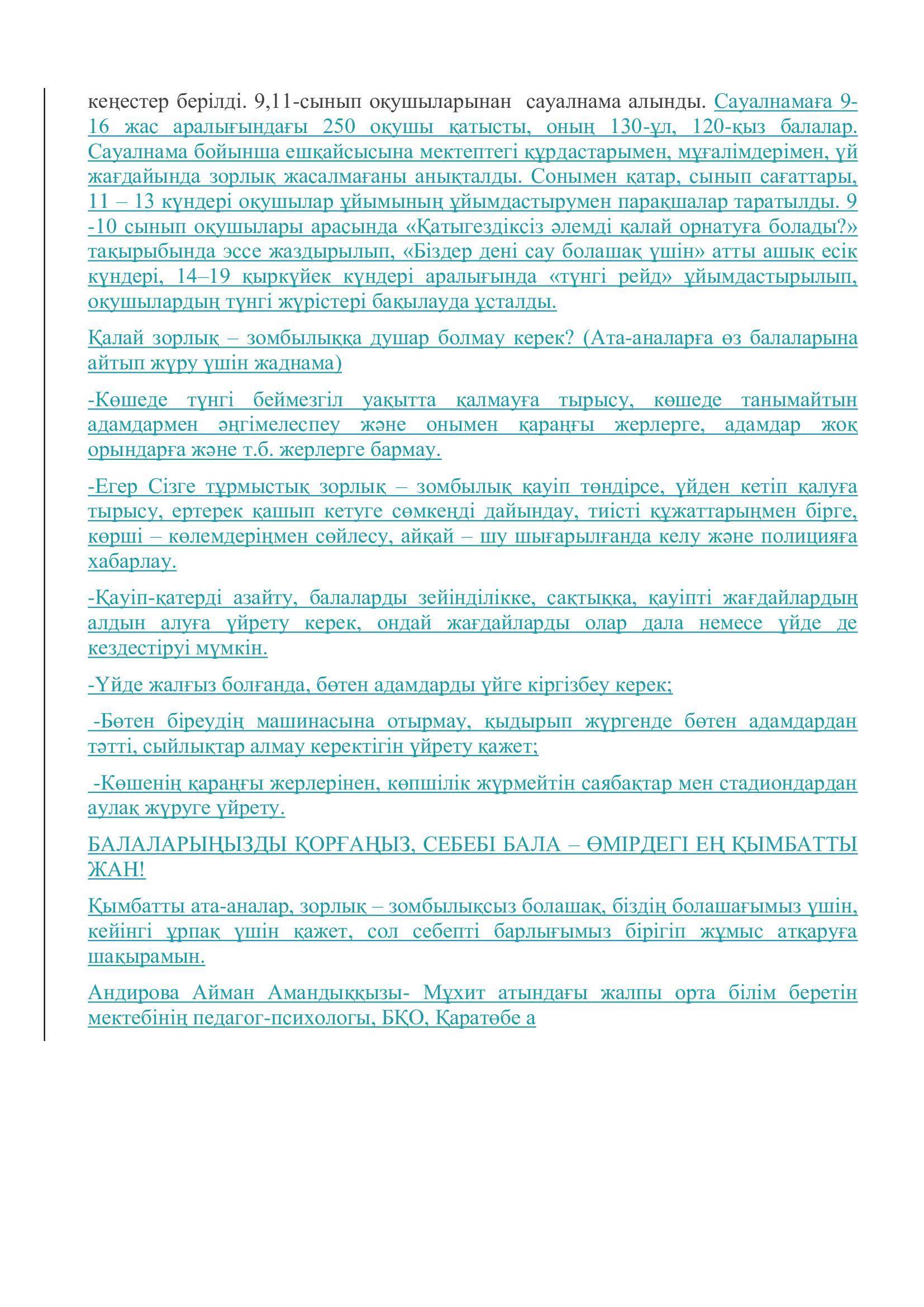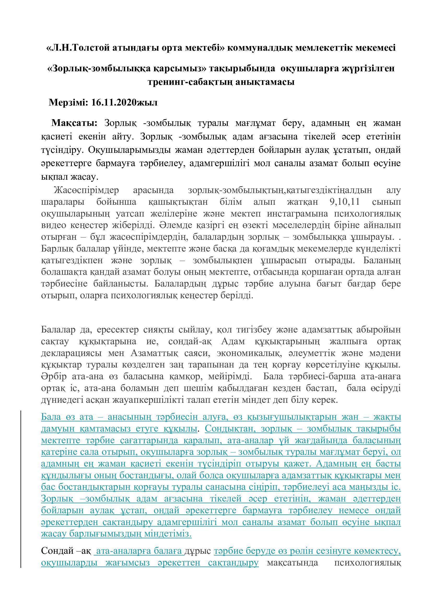 Зорлық зомбылықтың алдын-алу » Лев Николаевич Толстой атындағы орта мектеп