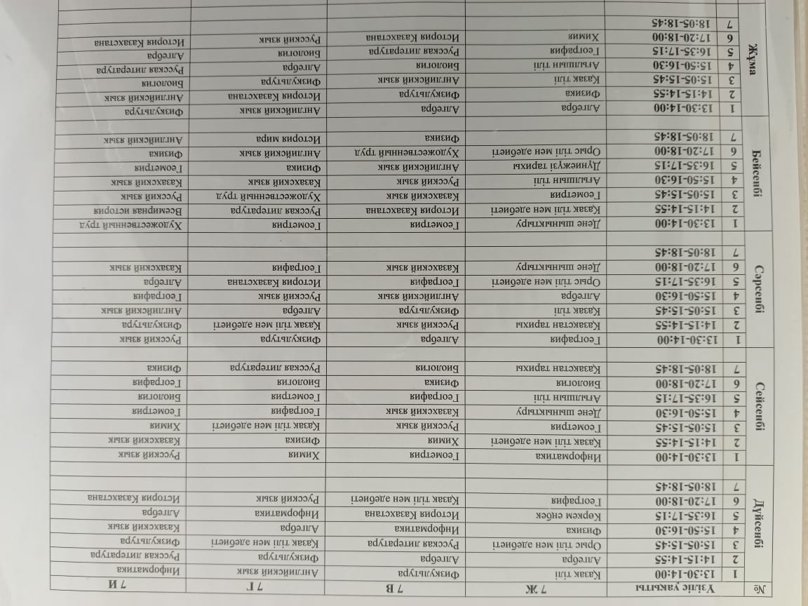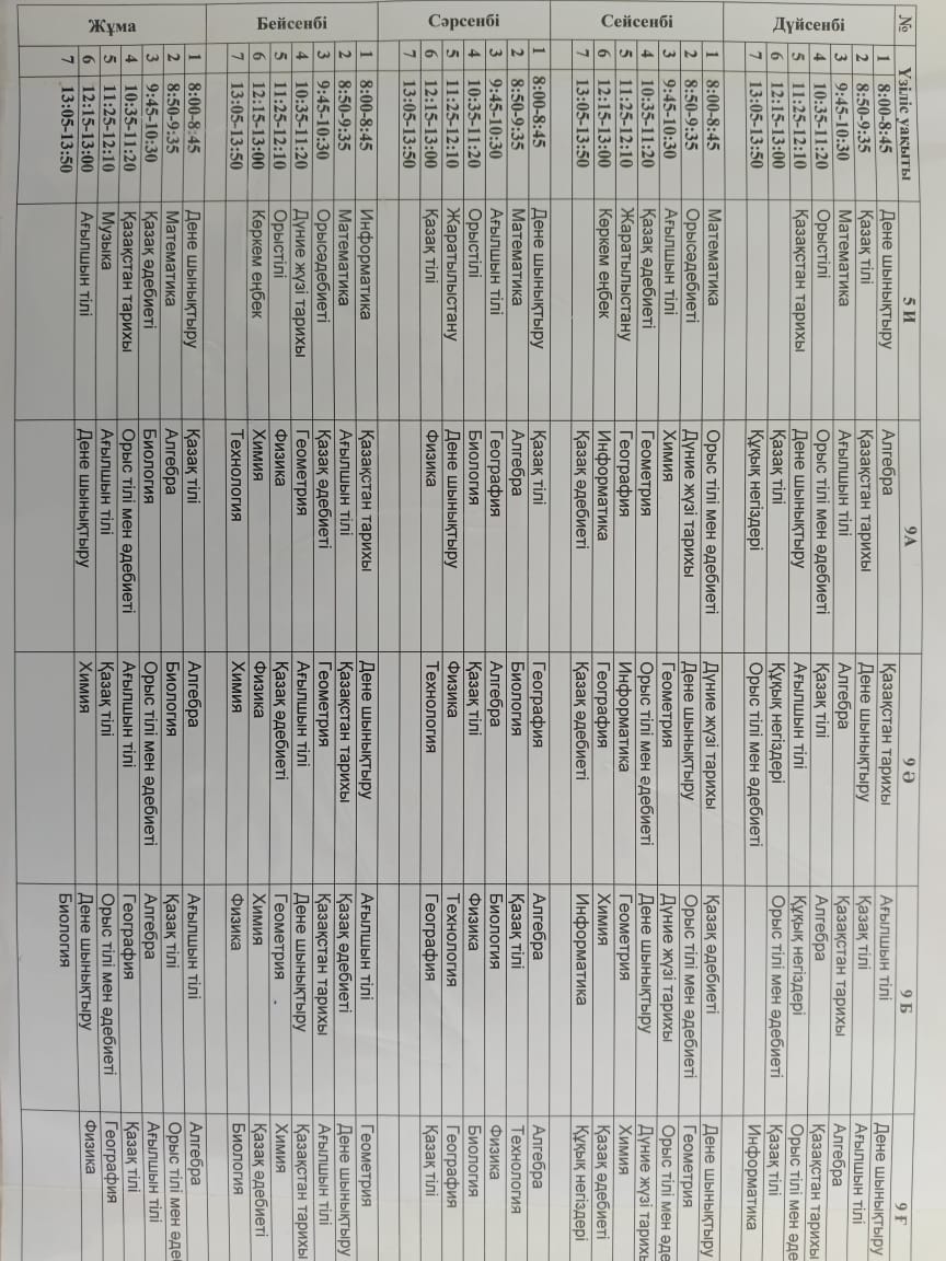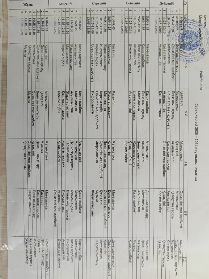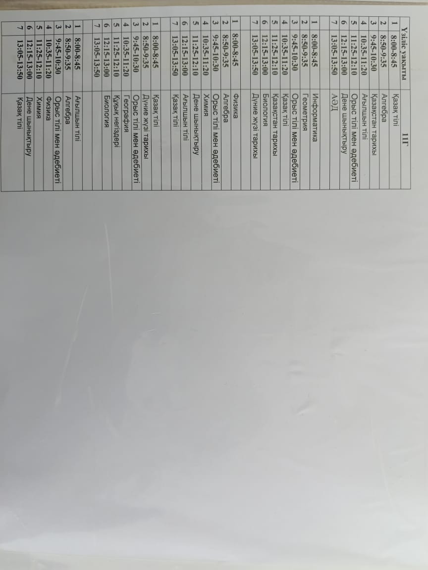 2023-2024 оқу жылының сабақ кестесі » Лев Николаевич Толстой атындағы орта мектеп