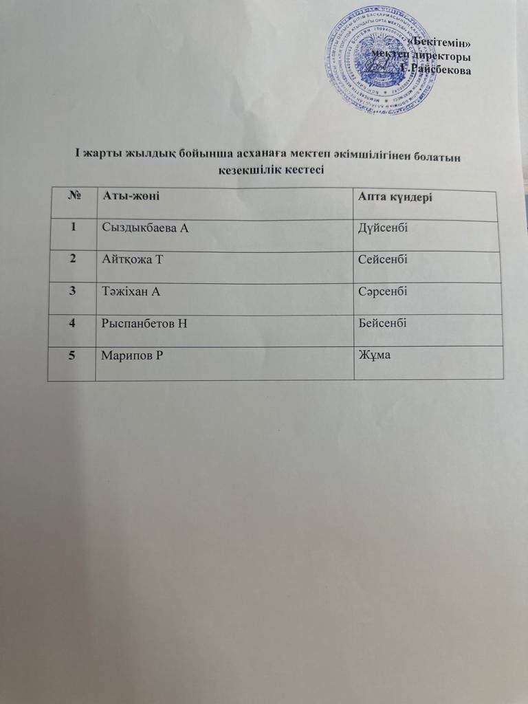 » » Мектеп әкімшілігінің кезекшілік кестесі