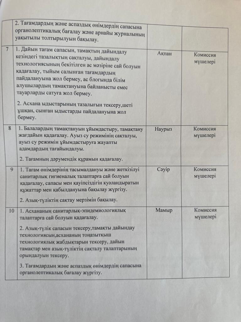 Бракеражды комиссияның оқу жылына арналған оқу жоспары
