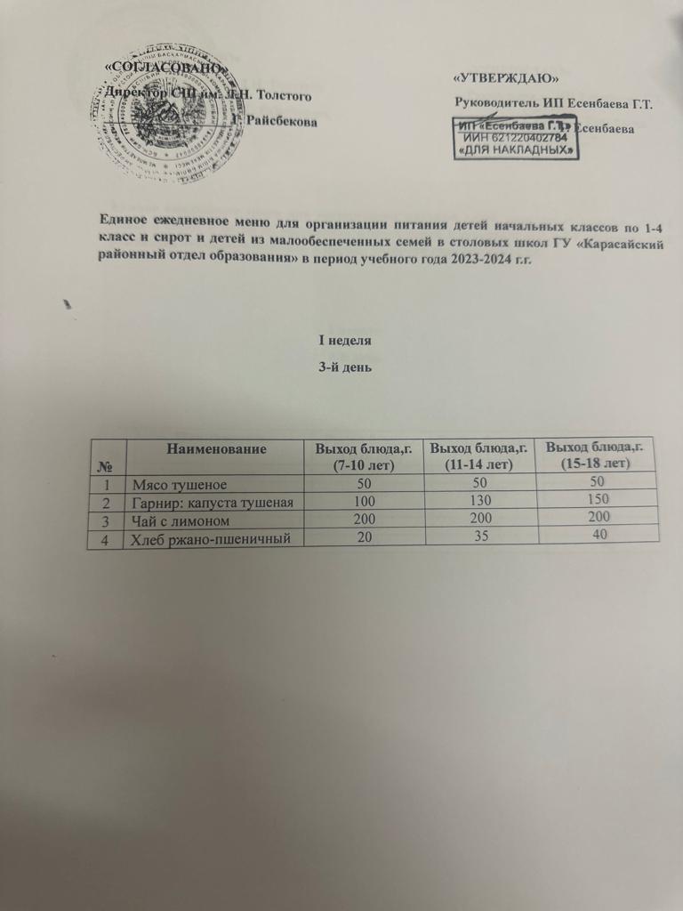 Сәрсенбі күнгі ас мәзірі » Лев Николаевич Толстой атындағы орта мектеп