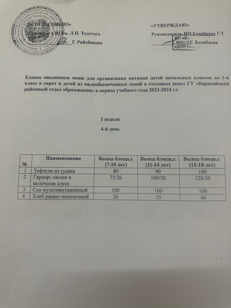 Бейсенбі күнінің ас мәзірі » Лев Николаевич Толстой атындағы орта мектеп