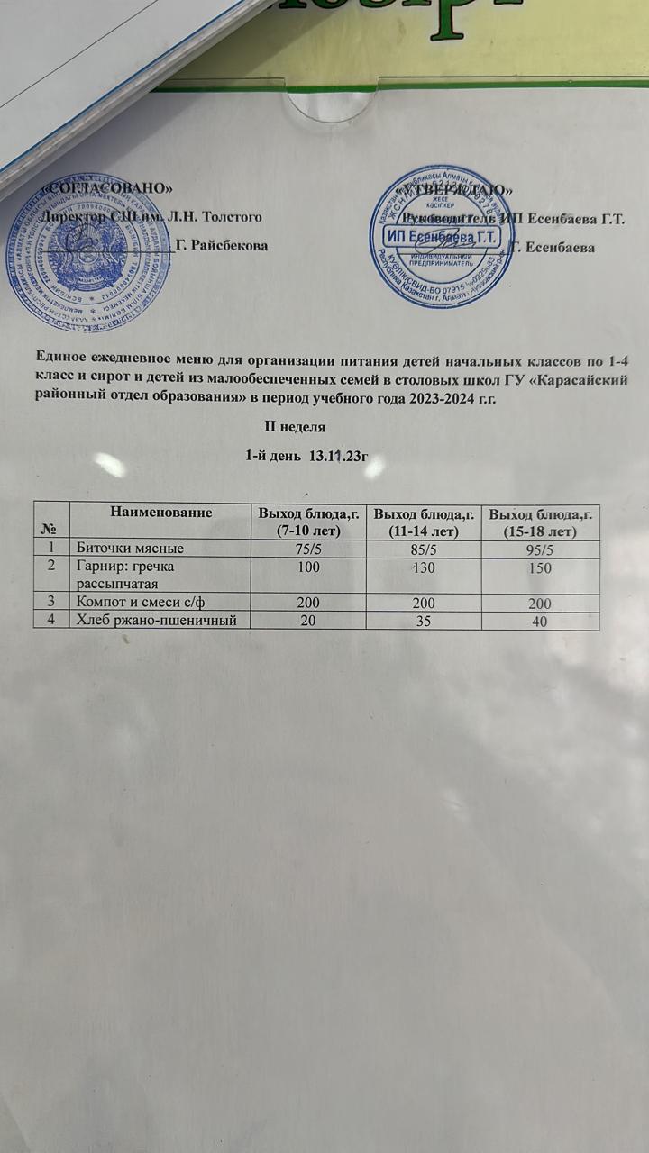 Ас мәзірі. » Лев Николаевич Толстой атындағы орта мектеп