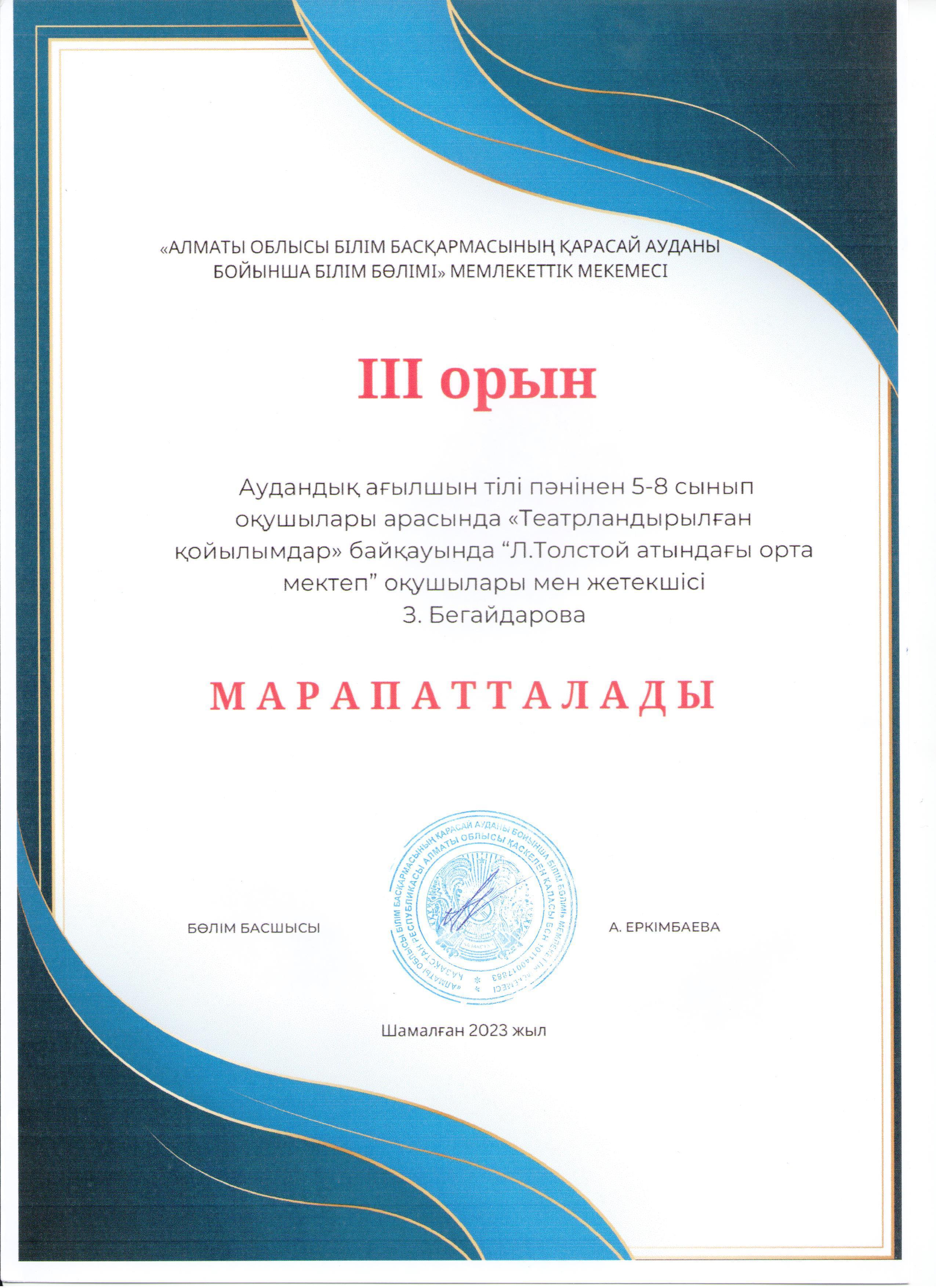2023-2024 оқу жылының 1-жарты жылдығында жеткен жетістіктеріміз » Лев Николаевич Толстой атындағы орта мектеп