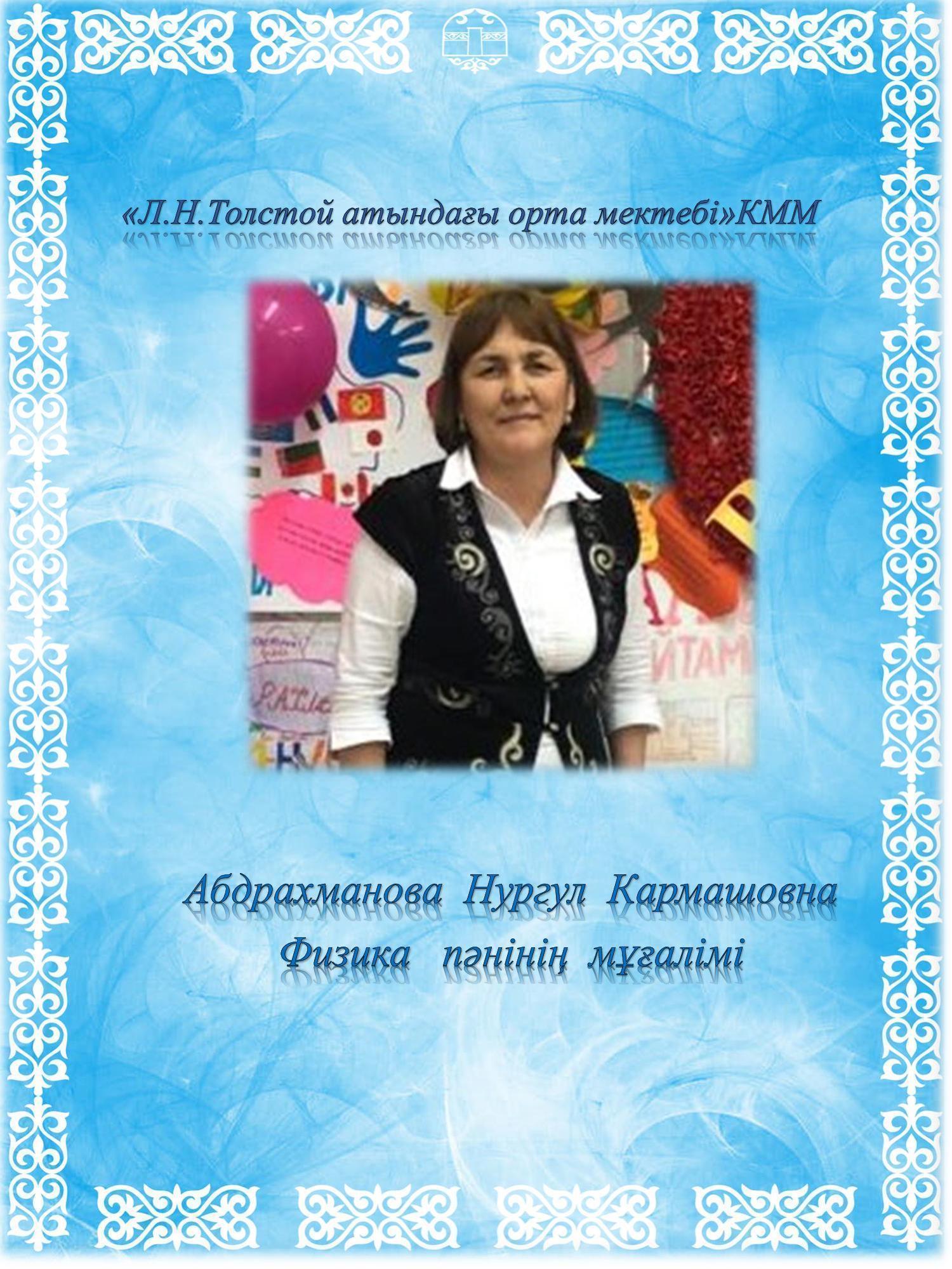 Абдрахманова Нургул Кармашовна » Лев Николаевич Толстой атындағы орта мектеп