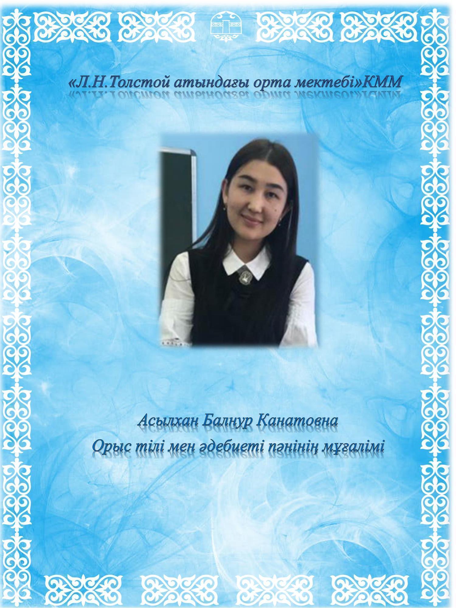 Асылхан Балнур Канатовна » Лев Николаевич Толстой атындағы орта мектеп