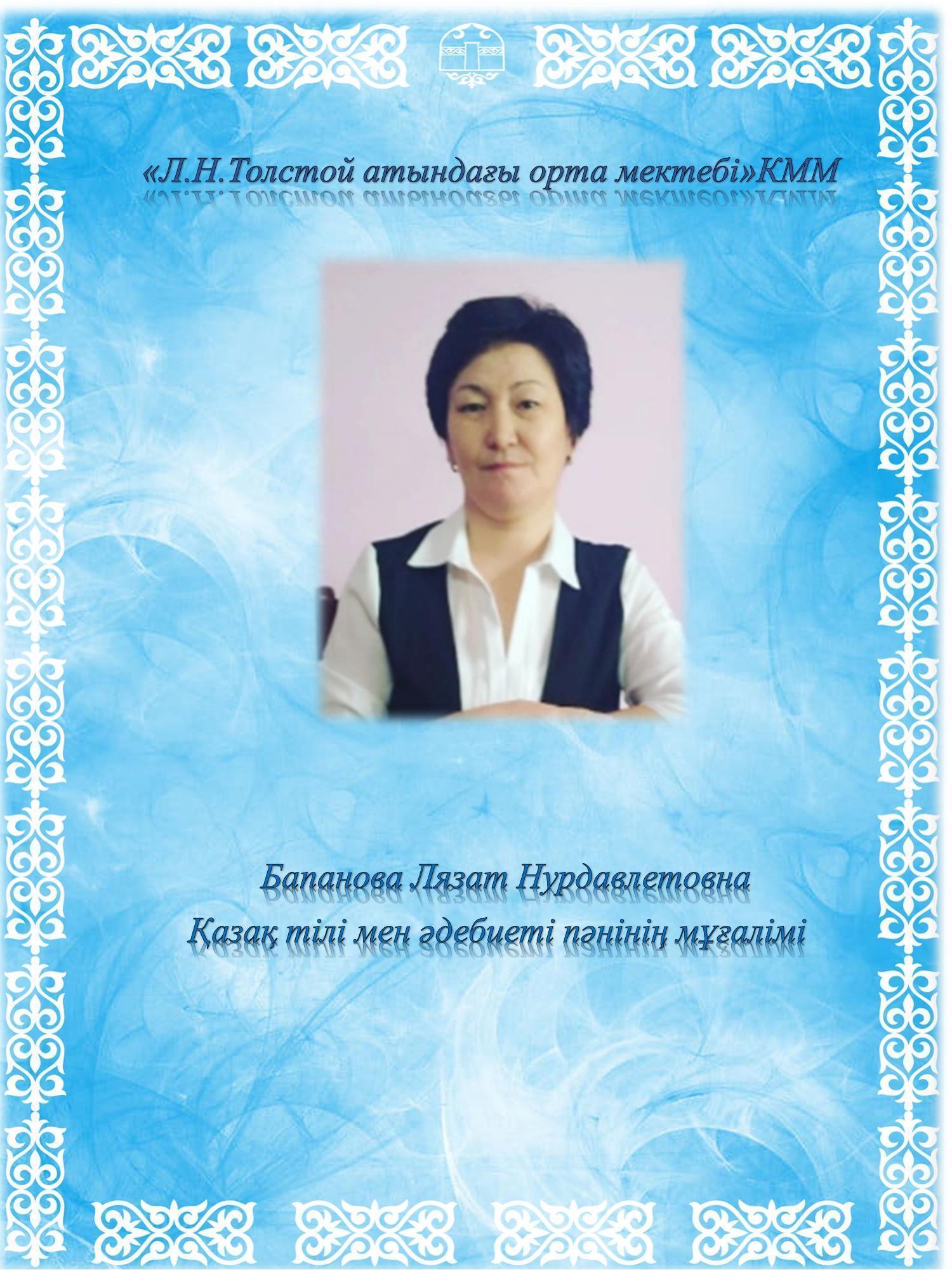 Бапанова Лязат Нурдавлетовна » Лев Николаевич Толстой атындағы орта мектеп