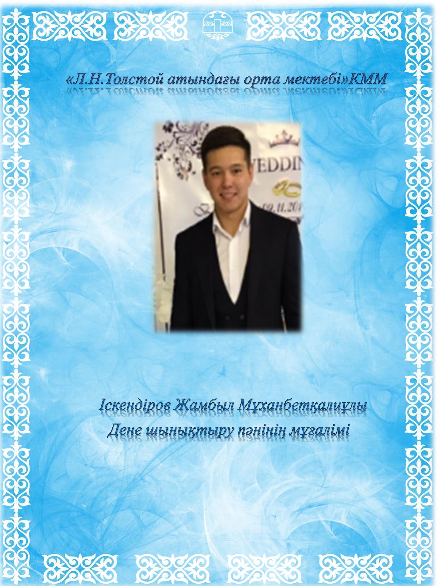 Іскендіров Жамбыл Мұханбетқалиұлы » Лев Николаевич Толстой атындағы орта мектеп