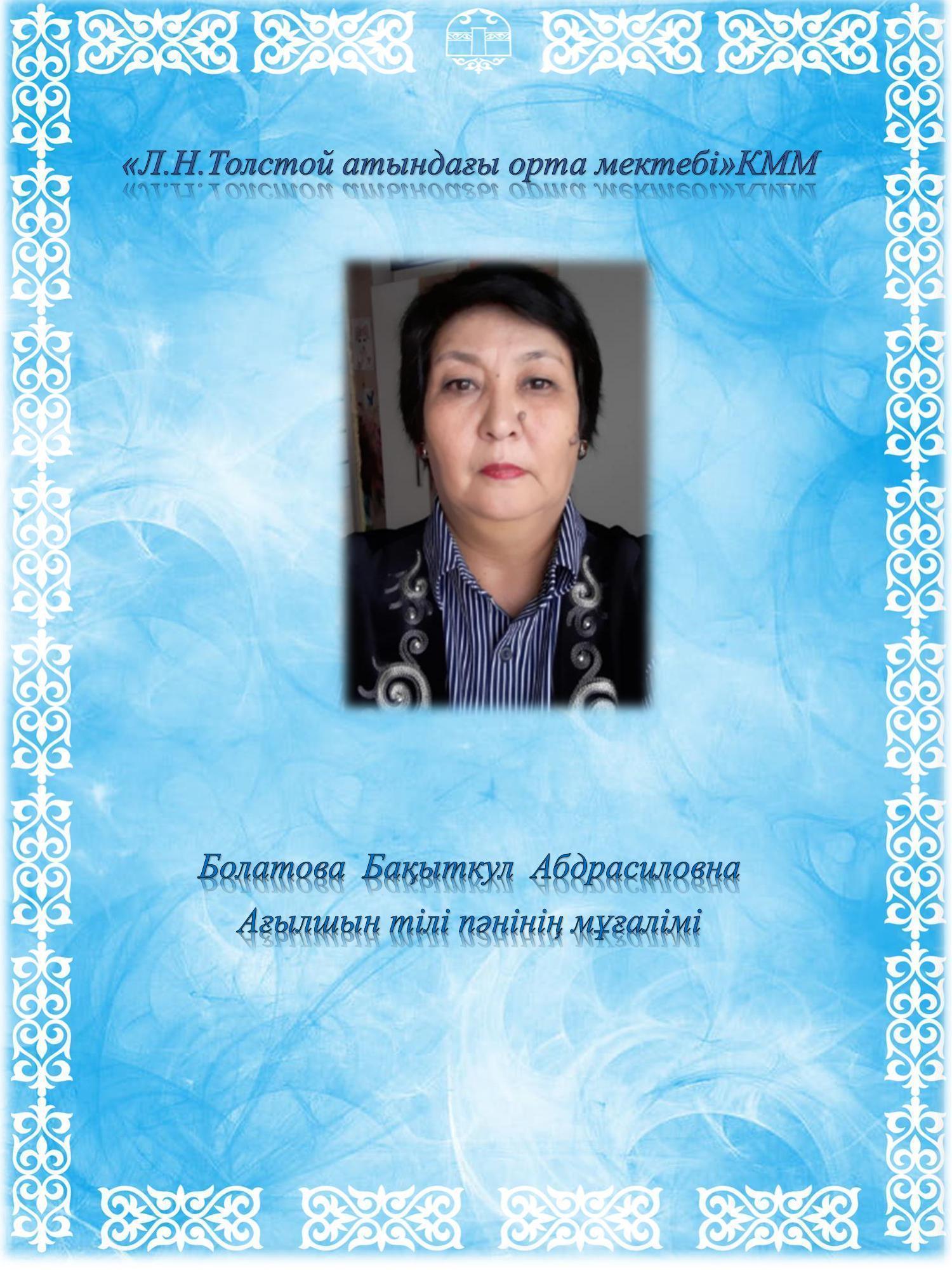 Болатова Бақыткул Абдрасиловна » Лев Николаевич Толстой атындағы орта мектеп