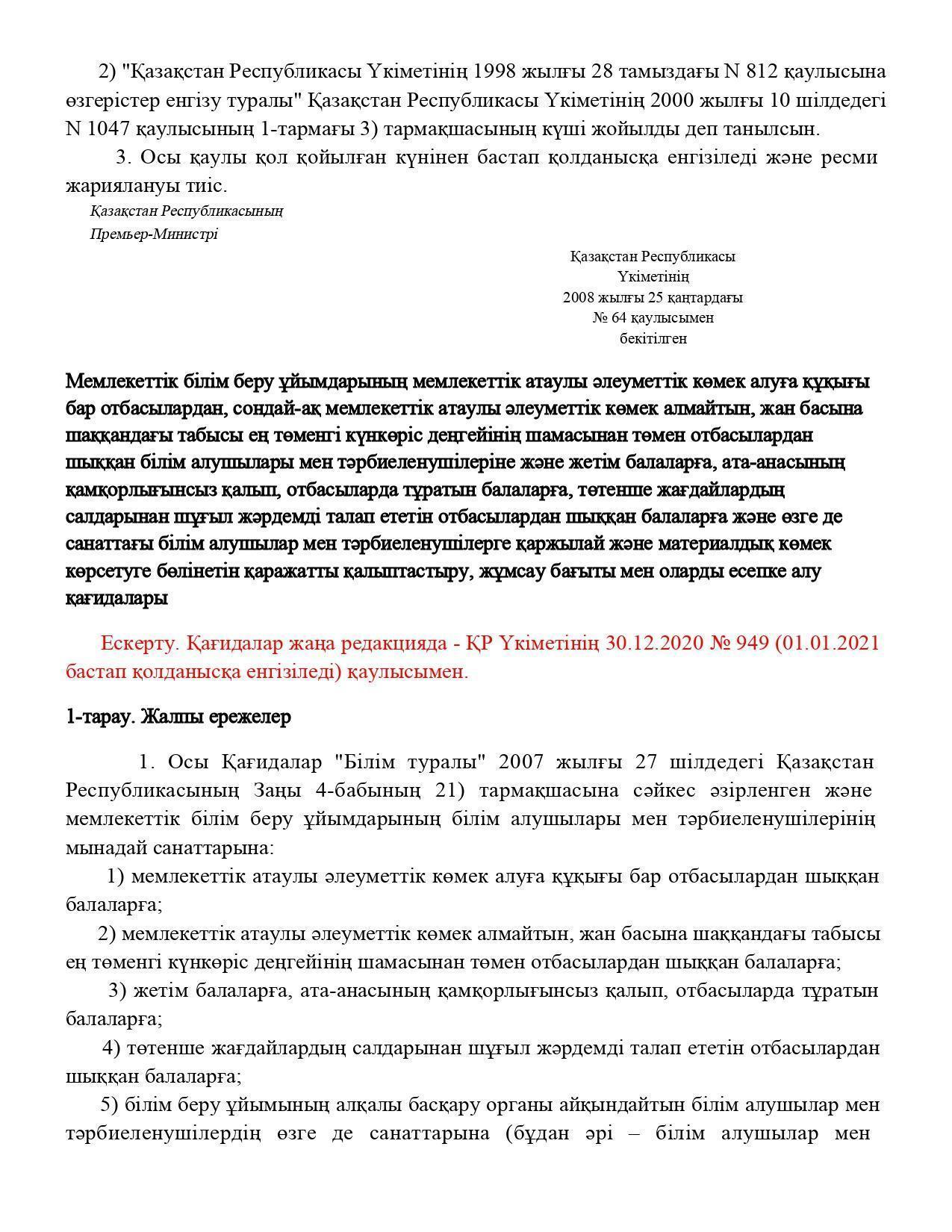 Қазақстан Республикасы Үкіметінің 2008 жылғы 25 қаңтардағы N 64 Қаулысы.