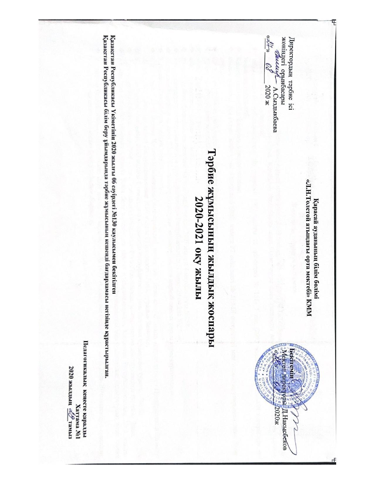 Оқу тәрбие жоспары » Лев Николаевич Толстой атындағы орта мектеп